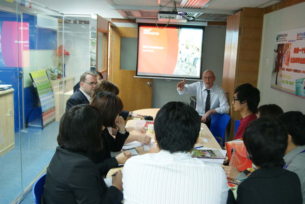 2010年7月22日,英国INTO集团曼彻斯特大学代表Dr Jeff Berens到访侨谊留学。Dr Jeff Berens与留学顾问们亲切交流,详细的介绍了曼彻斯特大学的具体情况。
