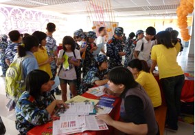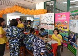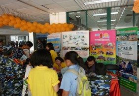 我们的咨询点引来众多学生的注意及咨询 学生们正在咨询侨谊动感夏令营的相关细