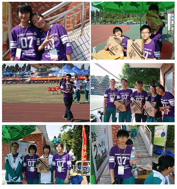 在校运会期间,志愿者们的工作最辛苦,但因为学联·省实T恤,他们成为校园里最独特的一道风景线!