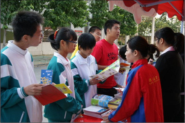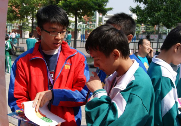 校运会开幕后不久,学生们就利用空当时间前来我们的咨询点了解相关资讯