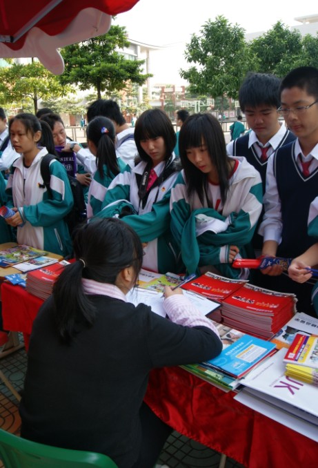 在29、30日两天时间里,我们学联国际的留学咨询点一直受到学生的关注,不仅在现场为学生解答如何选择院校、如何准备考试、如何让自己提高竞争力等留学相关问题,还为学生们都非常感兴趣的在课余时间“善用余暇”的“学联动感夏令营”课程进行详细的介绍。当天参与的同学除了省实本校学生外,更有真光中学、执信中学的学生闻讯而来,也要借此机会了解更多关于留学与夏令营等方面的资讯。