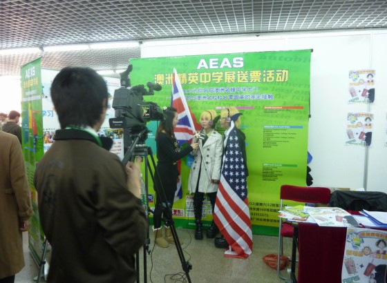 香港学联集团中国区总部-侨谊留学带来了2011年广州AEAS澳洲精英中学展的讯息,并在现场为同学们介绍本次教育展的相关信息,侨谊留学金牌顾问亦在现场为有志于出国升学的同学们详细咨询,x-voice网路电台现场报道了活动盛况。
