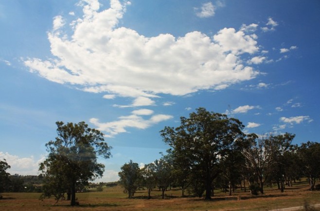 一路上我们欣赏着澳大利亚美丽的田园风光,一大片空旷的草原,零零星星的小木屋点缀其间,天空很蓝,白云朵朵(瓜瓜说那些云就像他在动画片看到的一样)。我们一路感叹着澳洲宽广的原始旷野,一面期待着Picton 的农场生活,另一面又忧虑着农场主不知道是怎么的人,会不会对我们不好。就这样一路怀着兴奋又忐忑的心情到达了目的地Picton 。