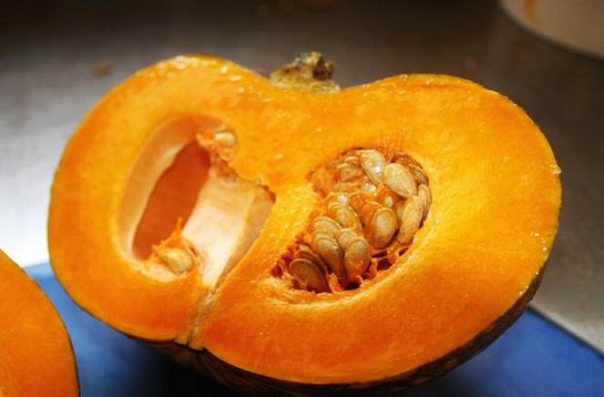 我的第一项工作就是切南瓜,好新鲜的南瓜啊