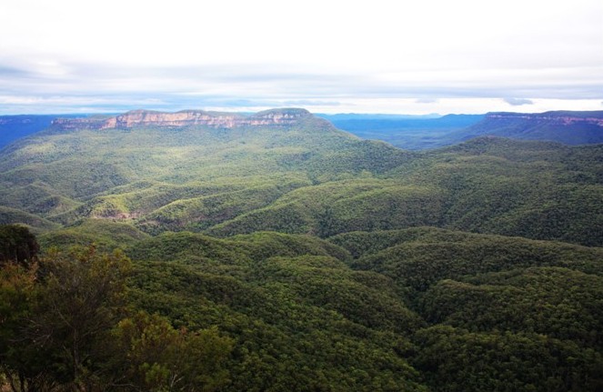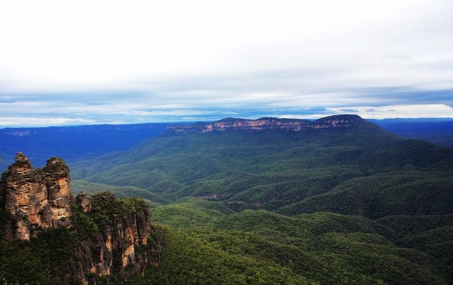 我们之前没想过会去Katoomba,没查过相关的资料,所以当我们第一眼看到蓝山的时候,真是惊喜若狂!景色实在太壮观了,一眼望过去都是蓝色的山脉连绵起伏,一大片密密麻麻的树木满布其中,仿佛一片绿色的海洋。那种意外收获美景的心情远比计划中的要兴奋雀跃。