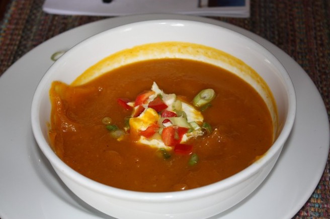我们到达后就马上开始进入工作了,瓜瓜在厨房帮忙洗刷碗碟,我在食物储存室帮忙准备当天所需食材,把南瓜切成一块一块准备做成南瓜汤,番茄、甜辣椒切成一圈一圈准备做成三文治配料,还有酿制豆腐,制作甜点等,全部都是标准地道的澳洲田园西餐。我发现西餐的做法比中餐简单多了,准备食材简单,制作流程简单,工作效率极高,而营养价值一点都不逊于中餐呢。