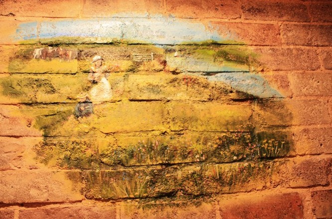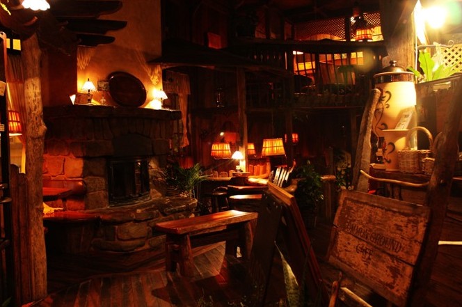 一走进Café就有一种很亲切的感觉,这里的装修风格和bakery shop很像,全手工木制的桌椅,墙上手绘的风景画……果然传承了农场一贯的温馨简朴风格。