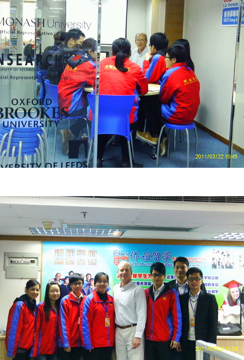 2011年3月22日,来自加拿大的Richmond International Student Programs的国际招生代表Richard Hudson来访侨谊留学-香港学联集团中国区总部,介绍该学校的最新情况以及招生要求.由侨谊留学总经理Phoenix带领其顾问们一同参与。