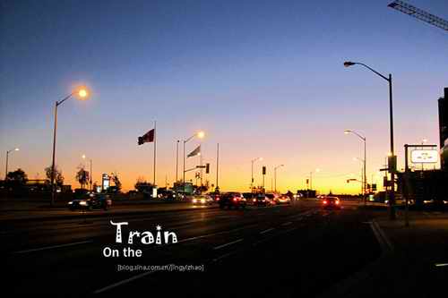 多伦多的地铁全名叫做Toronto Transit Commission,简称(TTC),平常人们就叫这个Subway或者train。这是在地铁上拍到的窗外的景色。很有原野的气息吧。一条条平行的铁轨慢慢伸向远处,夕阳的余光映出的晚霞和还没全部变黑的蓝天构成了一副多么唯美的图画!