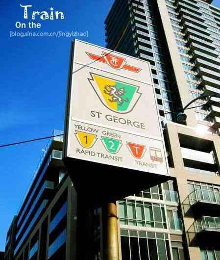 白色的牌子上面的红色标志就是多伦多地铁的标志了。这就是著名的St George地铁站,位于多伦多大学北端,是进入多伦多大学的地铁站之一。