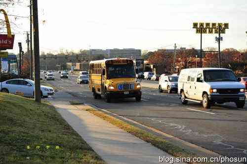校车有bus外形的,也有van的形状的。Ford牌子的,虽然是公共开支,设施却是硬邦邦的。这里绝对没有“要命的校车”。