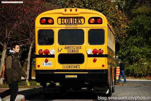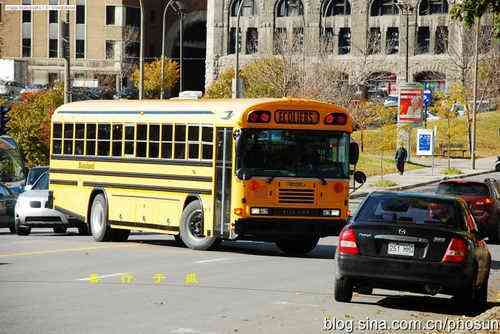 基于上述地理和族群的因素,以及相关的房价因素,不难看出每辆普通的校车都承载了教育公平的重任。在加拿大的魁北克地区,校车是用法文标识的,因为这里是法语区,第一语言是法语。注意:车是BLUE BIRD的牌子。