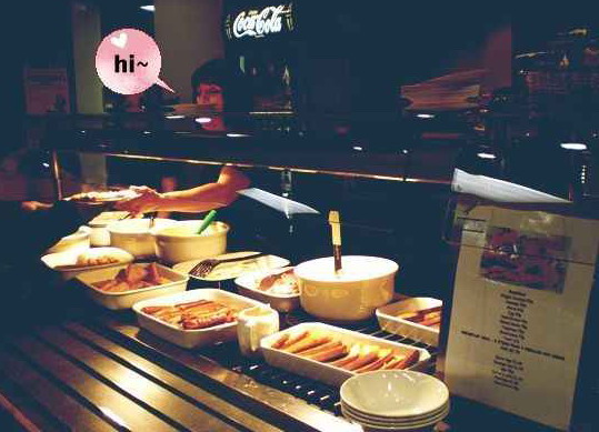 学校卖非常正宗的英式早餐,有面包片,香肠,培根,豆子,鸡蛋,咖啡和奶茶,一个人2.75镑,可以五种食物拼一盘,再加一杯饮料。