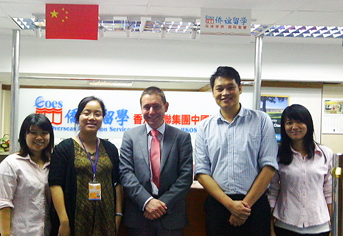 2011年05月21日,来自英国Cambridge Education Group的招生代表Pete Shemilt 来访侨谊留学-香港学联集团中国区总部,对顾问们进行院校培训