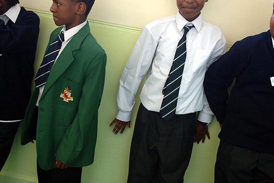 这是七年级学生新学年的新校服。伦敦白城(White City)。