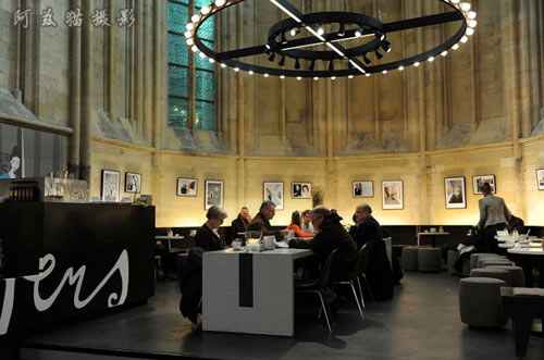 看来荷兰人不怎么把宗教当回事,但对读书却非常认真。荷兰人有喜欢阅读的习惯,也很多才多艺,马斯特里赫特本身就有很多大学生,一个12万人口的小城,大学以上的学生就有两万人,书店里总是人来人往也就不奇怪了。本地人,留学生和移民构成了马斯特里赫特充满生机的阅读文化氛围。每年超过70万来访者中慕名而来的游客越来越多,如果是参观教堂的游客,临走的时候不忘捎带两本书,而如果是买书的顾客,也一定会在咖啡馆小坐一下,感染一下这里的艺术气氛,或者欣赏一下正在进行的展览,喝杯饮料,翻翻书,静静地沉浸在书的世界中。