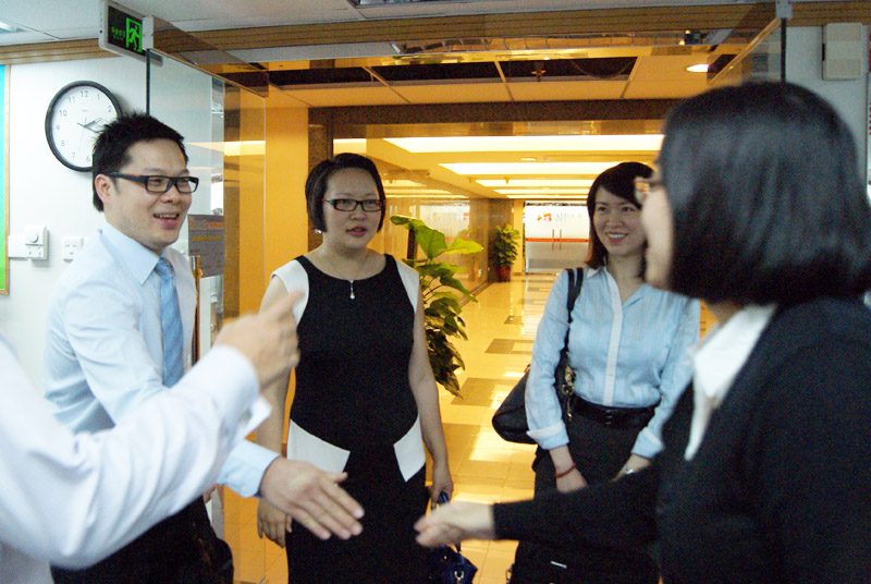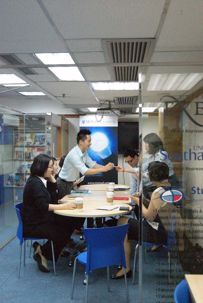 2011年11月02日,来自澳洲Monash University的常务董事Sunny Yang,地区经理Karen Zhang,学生办副主任John Tang来访侨谊留学-香港学联集团中国区总部,参观侨谊留学办公室。对留学顾问们进行院校培训,并进行院校面试。