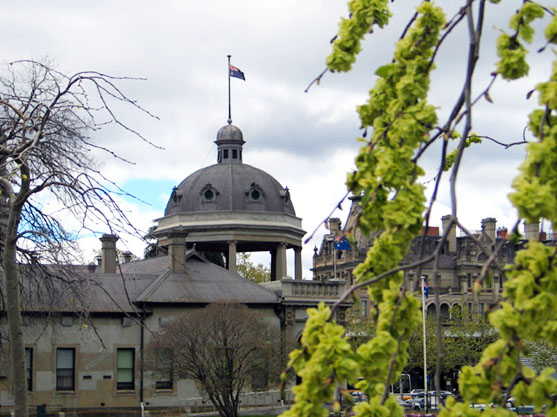 今天我们一行三人一起逛逛市区,早上有个好天气,阳光灿烂!拿上一张宿舍里的地图,往最多人的地方走!A提议到市中心的公园走走,附近有几个博物馆可以去看看。不错的提议!这里的天气很象珠海的冬天,但这里的空气很棒,透明度很高,可以看到远方的建筑物。Bendigo的高层建筑大多是教堂,那种跟英国类似的尖顶教堂,这个市中心仿若英国一个不知名的小城镇,安静,悠闲。