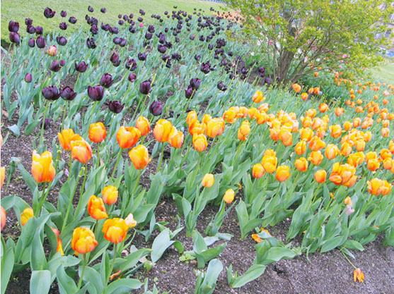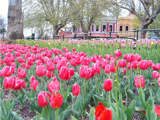 出来已经是中午了,我们找到当地的information centre,了解到这里市郊有个制陶厂,大概有7、8公里,我说不如走过去?J说没试过。information centre旁边有个小小的花房,我们信步走过,看到开得无比灿烂的郁金香,两个女生都为之晕倒,少不了狂拍一气的照片……