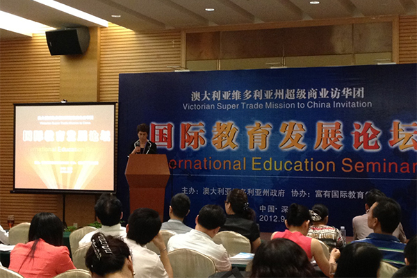 澳大利亚维多利亚州政府商务与创新部国际教育处高级官员发表演讲,畅谈中澳国际交流。