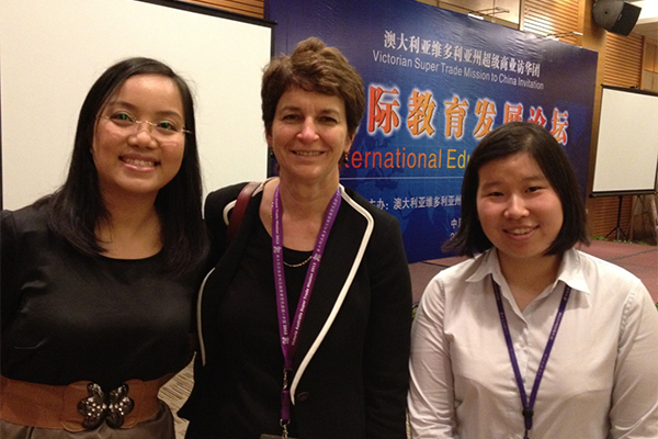 侨谊留学总经理郭文丽小姐(左)与维多利亚州政府国际教育高级官员亲切合影。