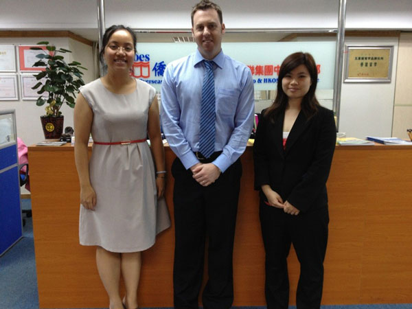 2012年9月25日上午,澳洲Australian Catholic University的国际招生代表James Kelly来侨谊留学-香港学联集团中国区总部到访,与侨谊留学的顾问会面更新最新的院校动态。以下是James Kelly和侨谊留学总经理、留学部经理的合照。