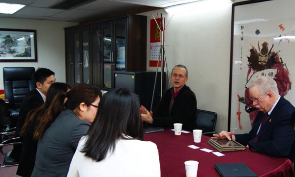 2013年3月11日,来自美国普利茅斯州立大学Plymouth State University的工商管理学院院长-川特.伯格斯Trent E. Boggess来访侨谊留学,为美国部顾问们进行院校培训。