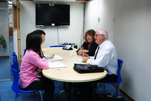 2013年3月12日,来自新西兰圣多米尼克天主教学院St Dominic’s Catholic College的国际学生部总监Gay Foley与李斯顿学院Liston College的国际学生部总监Paul Houghton来访侨谊留学,为澳新部留学顾问介绍其学校的具体情况。