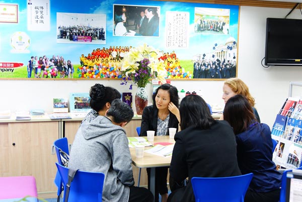 2013年3月19日,Educatius美国精选高中的申请处理官员Katherine Choiniere女士与驻广州的代表Emma Zhang女士来访侨谊留学,为美加部留学顾问介绍其校网学校的一些具体情况及新政策。