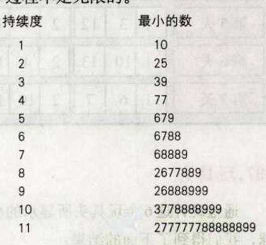 答案:持续度分别为2,3,4的最小的数分别为25,39,77。每个数通过重复题目中的过程都可以得到一个一位数。这个过程不是无限的。