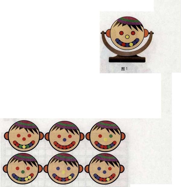 问题:玩具头展示了统计学的“通过一部分样本来 推导整体”的方法。一个玩具头(如图1所示)里面装了60个小 球,分别是绿、黄、蓝、红4种颜色。我们不知道各种颜色的小球分别有多少个。转动一下玩具头,它就会旋转,里面的小球也会重新混合。每次转动停下来时,它的眼睛、鼻子和嘴巴所显示的都是不同的10个小球的组合。下面是6次转动玩具头后所得到的结果。你能够由此推导出里面各种颜色的小球分别有多少个吗?
