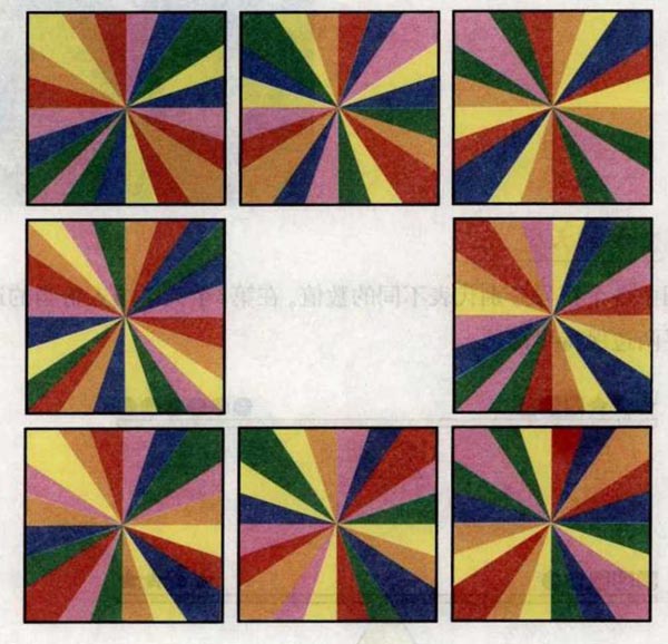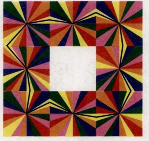 问题:这8个棋子的每一条边都包含6种颜色。你能分辨出棋子经过旋转后 (不改变它们在游戏板上的位置),哪种颜色能形成一条封闭的环形线路?