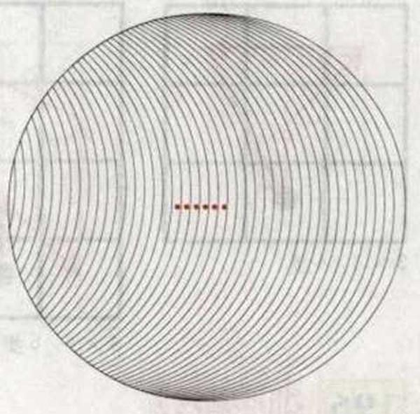 问题:如下图,这6个红色的圆点中哪一个是这个大圆的圆心?