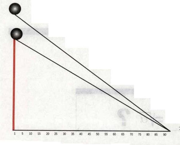 答案:我们把小球在1秒钟内所经过的距离设为d,那么它在前2秒钟内经过的总距离为4d,在前3秒钟经过的总距离为9d,在前4秒钟内经过的总距离为16d,依此类推。你可以用一把尺子来检验:将尺子倾斜成一定角度,让小球沿着尺子向下滚动。不过倾斜角度一定要足够小,才能使小球在尺子上持续滚动4秒钟。