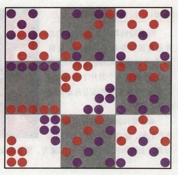 答案:当然,你可以一个一个地数,但这样花的时间绝对要超过规定的时间。你可以先迅速分析一下图形的特点,然后再算出圆点的数量,这样做能够大大提高速度。每个小正方形中有10个圆点,一共有9个这样的小正方形,因此一共是90个圆点。