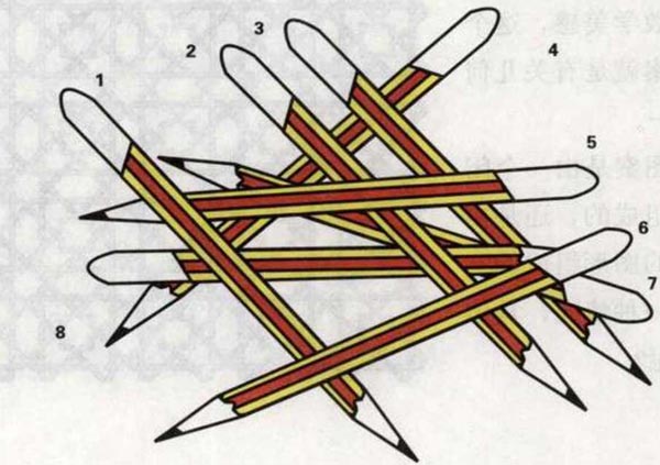 问题:如下图,在这堆铅笔中,按照从下往上数的顺序,哪支铅笔是第3支呢?