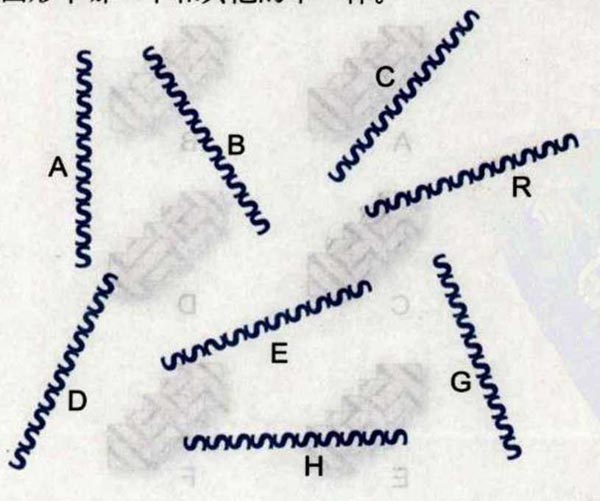 答案:E,这些图案均由10个S字母组成的, 但是在E答案中有一个S的方向是错误的。