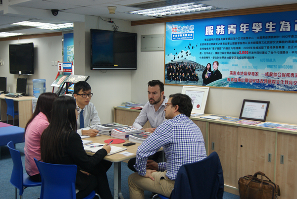 2013年10月29号,来自美国UNIVERSITY TRACK PREPARATION的代表Patricio和Sean来访侨谊留学-学联集团中国区总部,对侨谊留学顾问们介绍其旗下合作的高中院校Saint Anthony’s High School, Fairmont Private Schools和Saint John’s High School的最新情况以及招生要求。